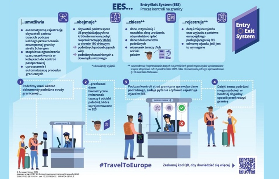 W najbliższą niedzielę, 12 października 2025 roku, na polskich granicach ruszy zaawansowany system Entry/Exit System (EES), rejestrujący cyfrowo obywateli państw trzecich wjeżdżających i wyjeżdzających ze strefy Schengen. Umożliwi on błyskawiczny dostęp do danych o pobycie obcokrajowca. To początek końca stempli w paszportach. System zarejestruje dane biometryczne wszystkich podróżnych spoza UE.