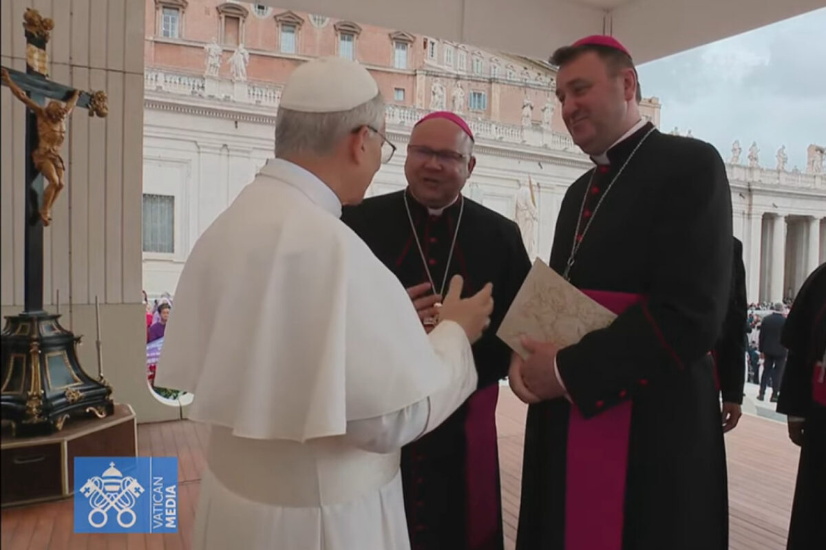 Znadniemna.pl na podstawie Vaticannews.va , na zdjęciu: Papież Leon XIV, abp Józef Staniewski (po prawej) i bp Aleksander Jaszewski (w środku), fot.: Vatican Media