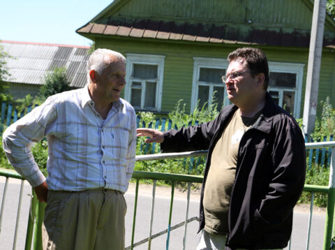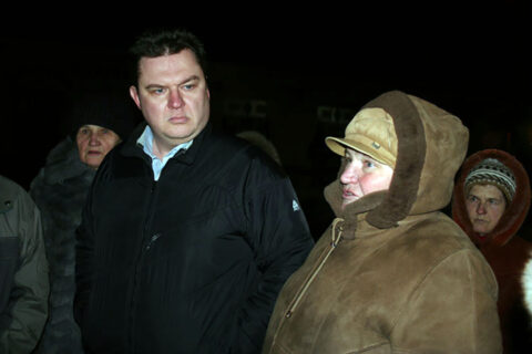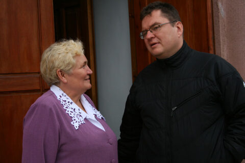 Andrzej Poczobut wspierający Teresę Sobol po wtargnięciu do Domu Polskiego w Iwieńcu funkcjonariuszy milicji i kontroli państwowej, 12.10.2009 r.