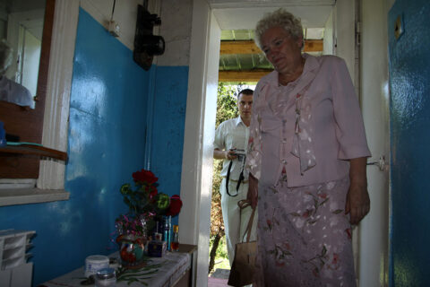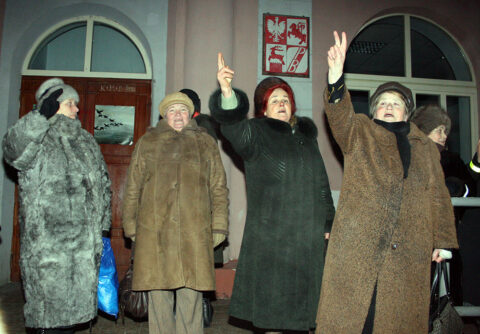 Działaczki ZPB bronią Domu Polskiego w Iwieńcu przed wtargnięciem OMON-u, 08.02.2010 r.