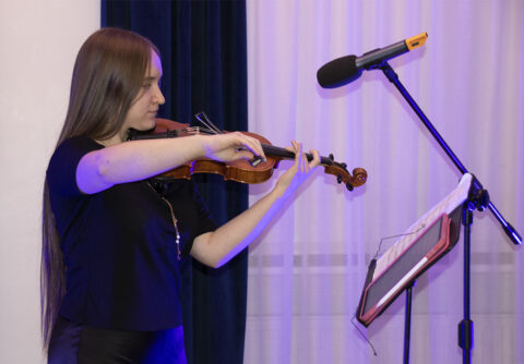 Otwarcie wystawy „Podróż ze szpachelką” poprzedził występ skrzypaczki Mai Budniewskiej, która obdarowała publiczność wykonaniem wiązanki popularnych utworów.