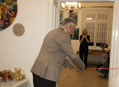 Gienadij Pitsko przecina wstążkę przed salą z wystawą pt. „Podróż ze szpachelką”