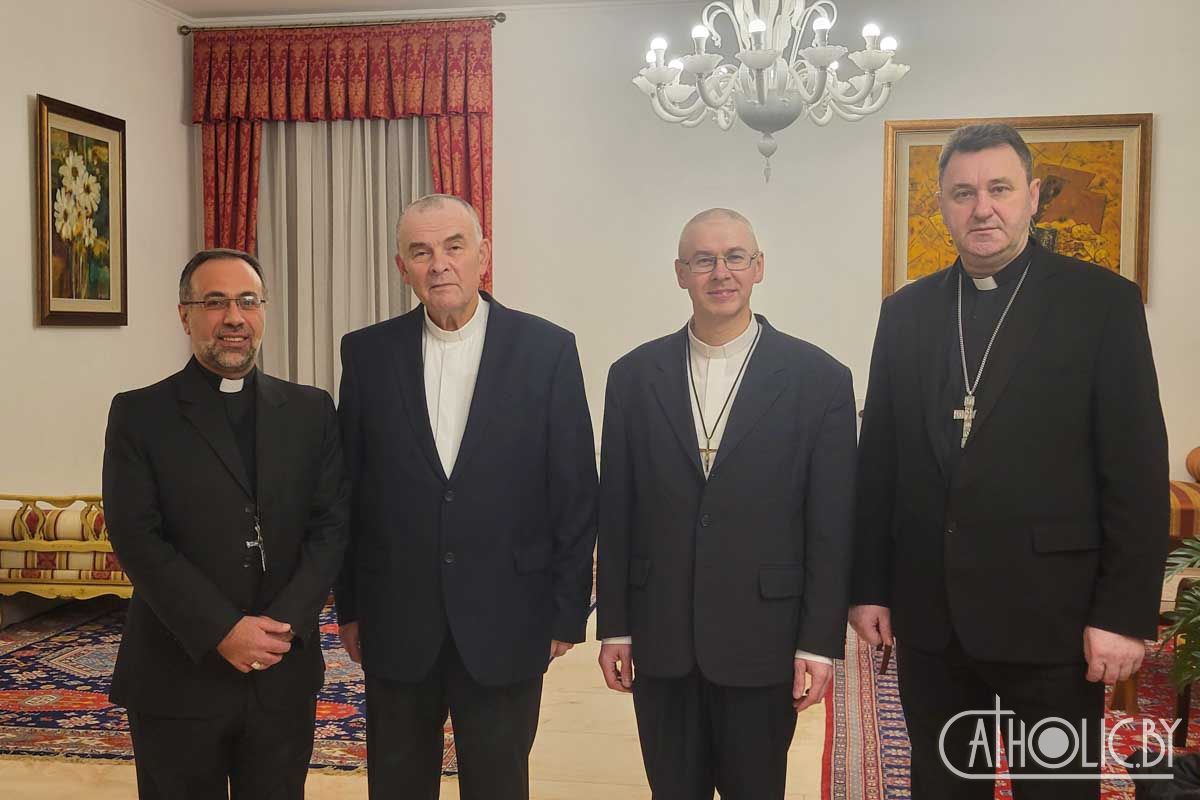 Znadniemna.pl na podstawie Catholic.by, na zdjęciu: nuncjusz apostolski w Mińsku Ignacio Ceffalia, ks. Henryk Okołotowicz, o. Andrzej Juchniewicz i przewodniczący Konferencji Biskupów Katolickich Białorusi arcybiskup Józef Staniewski  fot.: Catholic.by