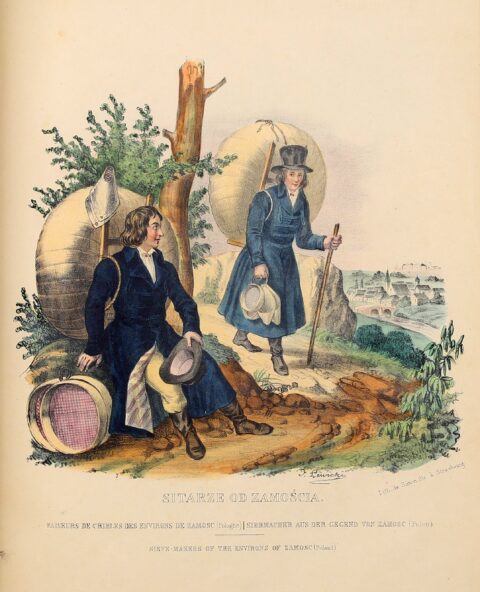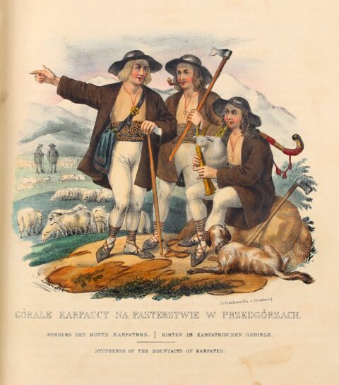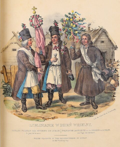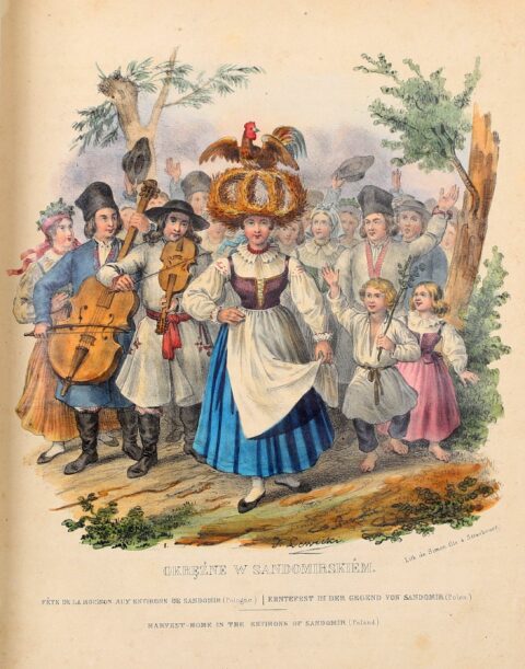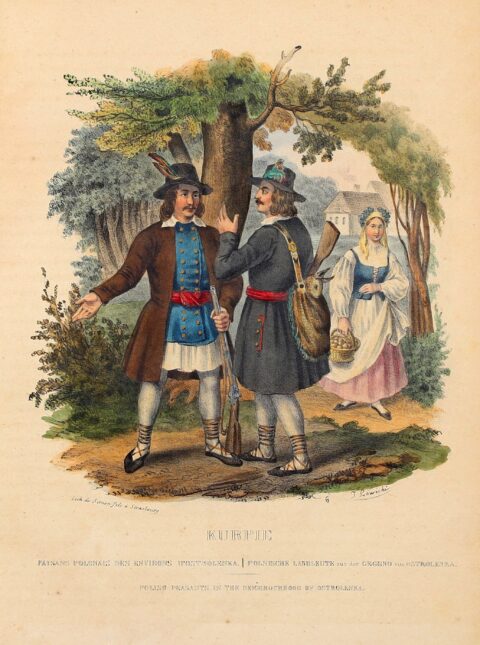 Opr. Adolf Gorzkowski, ilustracja: Polskojęzyczne wydanie albumu pt. „Stroje narodu polskiego z wiernym opisem jego obyczajów, zwyczajów i sposobu bycia” autorstwa Leona Zienkowicza, źródło: Onebid.pl