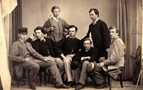 Od lewej: August Przeździecki, Konstanty Przeździecki, Jan Zamoyski, Franciszek Pusłowski, Konstanty Potocki, Zygmunt Pusłowski, Konstanty Zamoyski. Fot.: cyfrowe.muzeumzamoyskich.pl