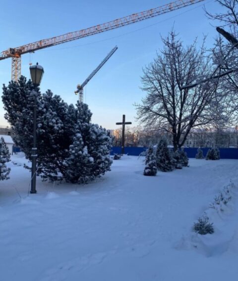 Obraz krzyża stojącego samotnie na skrawku ziemi pozostawionym parafii, tuż obok dźwigów i ciężkiego sprzętu, stał się symbolem napięcia między pamięcią a siłą państwowych inwestycji, fot.: Katolik.life