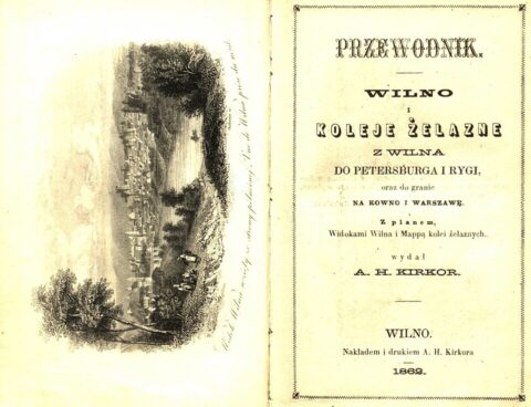 Wydany przez Adama Kirkora przewodnik pt. „Wilno i koleje żelazne z Wilna do Petersburga i Rygi…”, fot.: Wikipedia