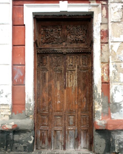 Drzwi wejściowe do kamienicy Woroszylskich przed restauracją, fot.: vgr.by