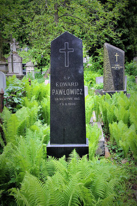 Nagrobek na mogile artysty Edwarda Pawłowicza. Cmentarz Łyczakowski, pole nr 10