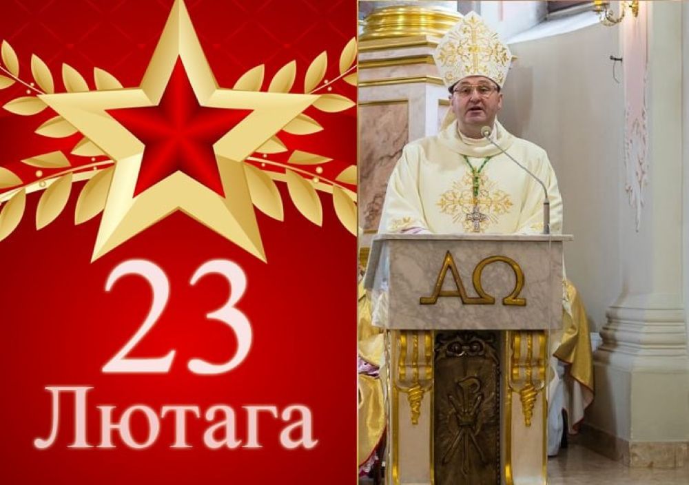 Walery Kowalewski/Znadniemna.pl, ilustracja: właśnie w ten sposób portal Kościoła Katolickiego na Białorusi Catholic.by zilustrował zapowiedź Mszy za „obrońców Ojczyzny” zawierającą życzenia pod adresem ministra obrony Białorusi z okazji święta 23 lutego, które obchodził celebrując okolicznościową Mszę św. w Mińsku arcybiskup metropolita Józef Staniewski, fot.: Catholic.by